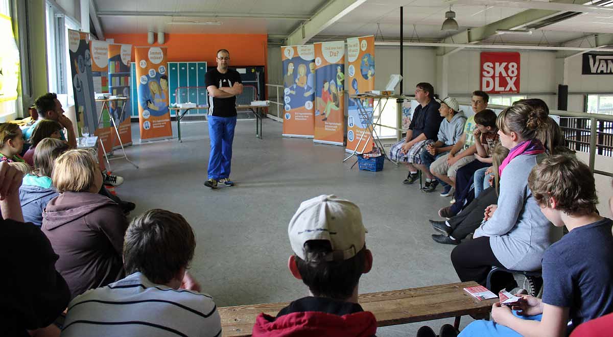 Um Kindern und Jugendlichen dieses Thema näher zu bringen und die Wichtigkeit in ihrem eigenen Interesse hervorzuheben, wurde hierfür in der Skate Arena ein Mitmachparcours aufgebaut.