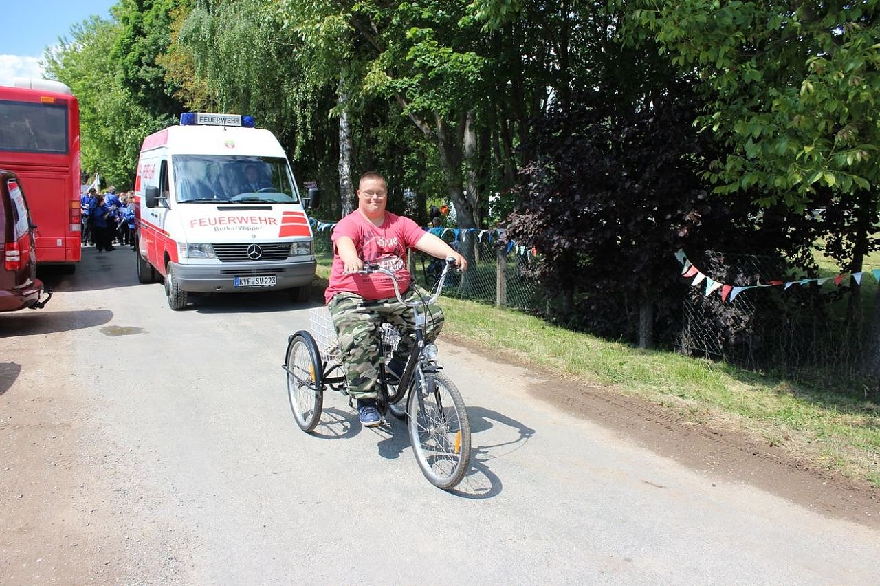 So zog man sogar bei strahlendem Sonnenschein los. Eingerahmt wurde der Zug von den Fahrzeugen der Freiwilligen Feuerwehr Berka.