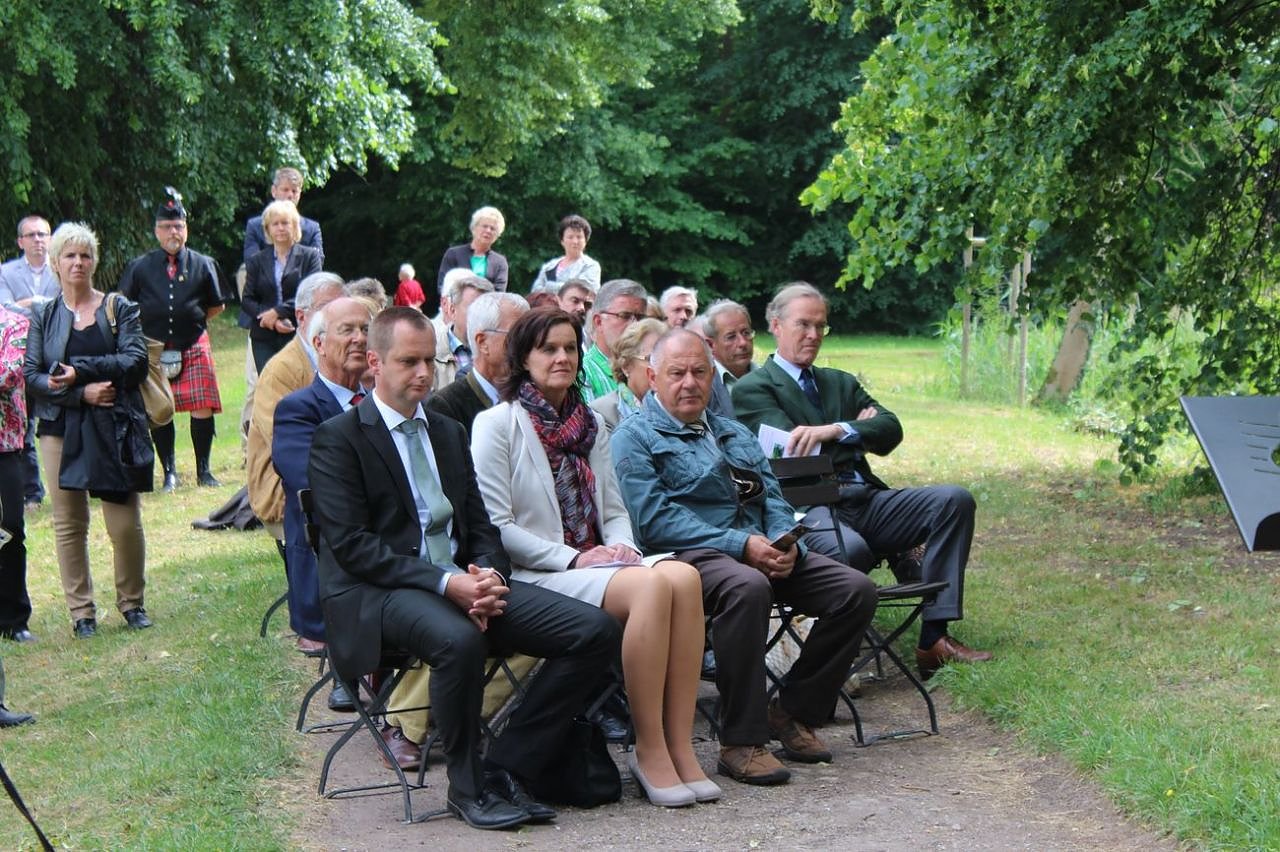 Damit war es auch möglich, dass sich der Park zum 250-jährigen Jubiläum in voller Schönheit präsentiert. An dem Festakt nahmen zahlreiche Gäste aus Politik, Wirtschaft und Kultur teil, u.a. Antje Hochwind (SPD) Landrätin des Kyffhäuserkreises, Dr. E. Paulus Direktor der Stiftung Thür. Schlösser und Gärten, Freiherr Jörg von Uckermann Urenkel der Fam. Jakob von Uckermann und Knut Hoffmann Bürgermeister der Gemeinde Kyffhäuserland, die auch Grußworte an die Gäste richteten.