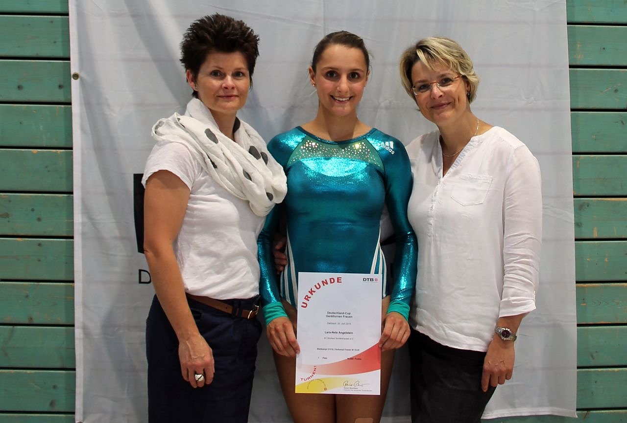 Zu einer sehr würdigen Siegerehrung, jede Teilnehmerin erhielt eine Blume und Urkunde, wurde Lara-Nele als 7. Aufgerufen ( mit nur 0,20 Punkten Rückstand zum 6. Platz! )! Die Freude war groß! Ein spitzen Ergebnis für einen Deutschland-Cup!