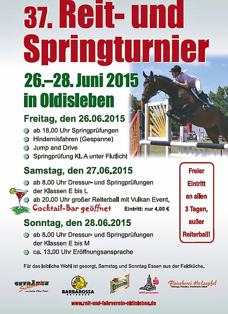 Am Wochenende findet in Oldisleben ein Reit- und Springturnier statt und der CDU-Ortsverein Sondershausen bittet zum Sommerfest...