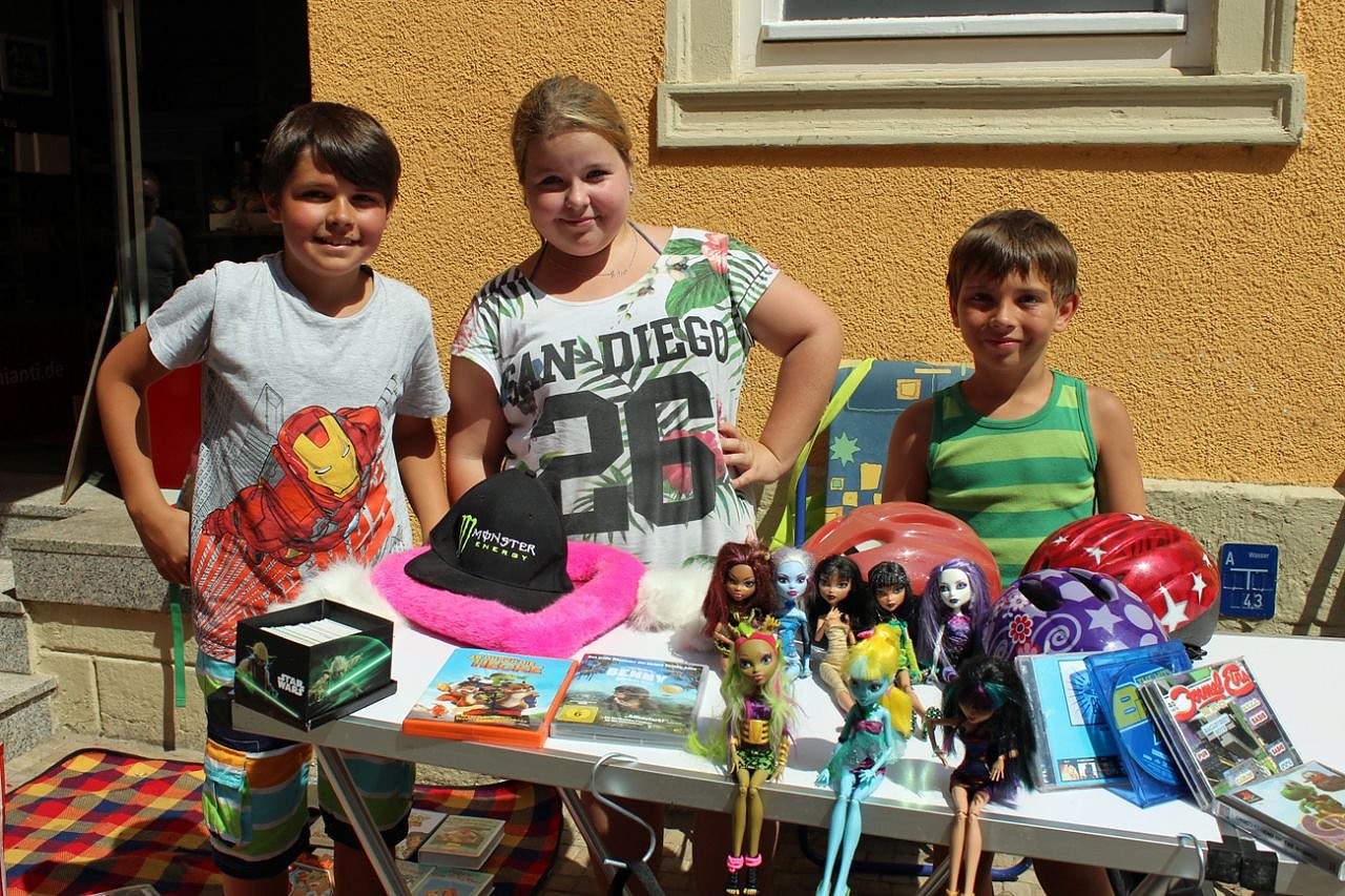 Aber bei der Hitze hatten einfach viele Besucher den Besuch eines Schwimmbades vorgezogen, als in der Hauptstraße von Sondershausen noch Trödel zu suchen. Auch wenn der Trödelmarkt offiziell bis 12:00 Uhr ging, waren gegen 11:30 gerade mal noch drei Stände auszumachen. Aber dieser Kinder hielten fast bis zum Schluss durch.