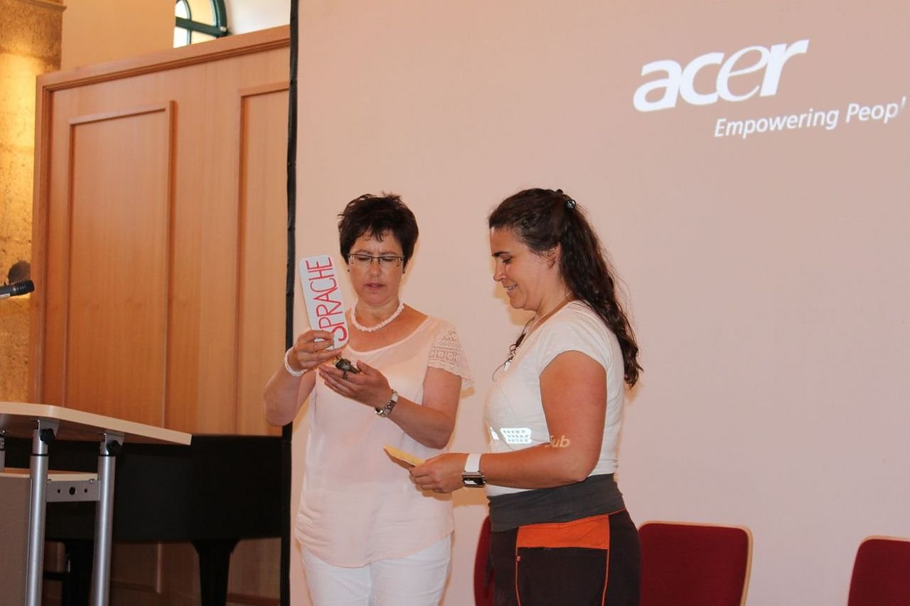 Sabine Trute und Sandra Oesterheld, Sprachförderkräfte der FAU in den städtischen Kindergärten der Stadt Sondershausen, demonstrierten zu Beginn der Veranstaltung an Hand von Schlüssel, bei denen die Sprache hilft sich den Menschen und Dingen zu öffnen.