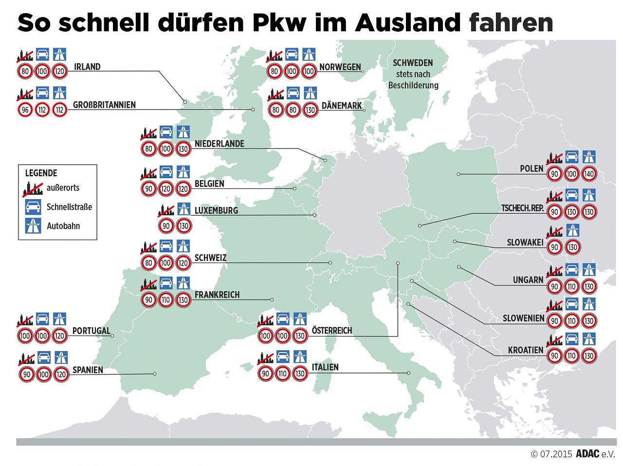 Teuer werden Überschreitungen auch in Italien (ab 170 Euro), in der Schweiz (ab 170 Euro) und in Großbritannien (ab 140 Euro). In Großbritannien müssen Urlauber besonders aufpassen, denn hier ist die Geschwindigkeit in Meilen angegeben. Auf Autobahnen und Schnellstraßen dürfen umgerechnet maximal 112 km/h und auf Landstraßen 96 km/h gefahren werden.