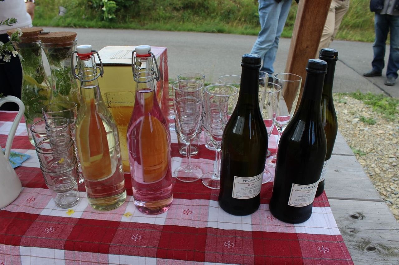 Dieser Pavillon soll neben den gebotenen Informationen auch Ausgangspunkt für geführte Wanderungen, insbesondere Kräuterwanderungen mit der Naturparkbotschafterin Katja Großstück- Machel sein. Sie hatte heute auch zur Einweihung interessante Kräuterprodukte mit gebracht, so einen leckeren Apfel-Thymian-Kuchen und einen nicht minderer leckeren Kirsch-Lavendel-Kuchen. Auch die Idee, etwas Lavendel-Sirup oder Minz-Sirup, mit Prosecco aufzufüllen ist eine köstliche Idee.