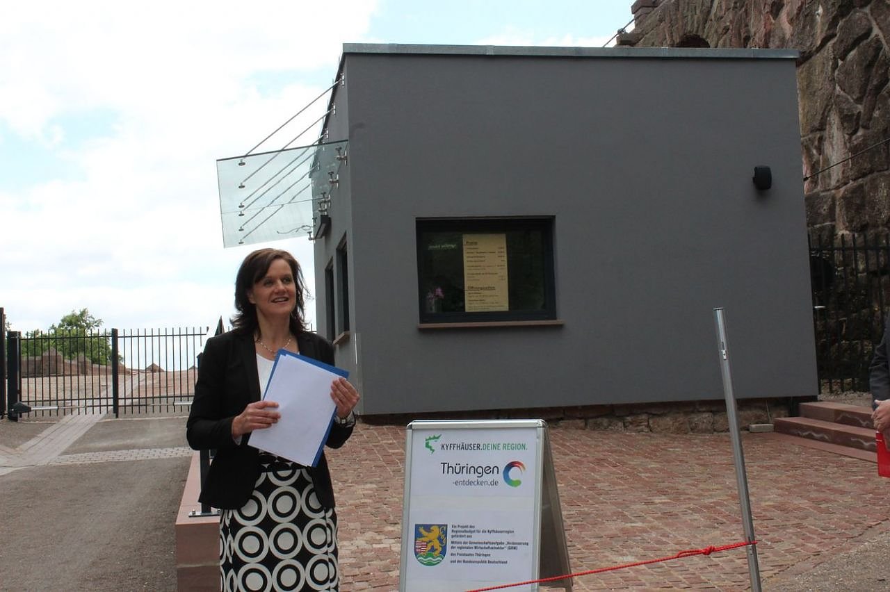In den vergangenen Jahren wurden etappenweise das Kassenhäuschen am Kyffhäuserdenkmal umgebaut, eine neue Toranlage installiert und die Freianlagen bedarfsgerecht gestaltet. Architektin Dr. Bärbel Angermann von ausführenden Architekturbüro Angermann Ebeleben danke den Bauleuten für die gute Zusammenarbeit.
