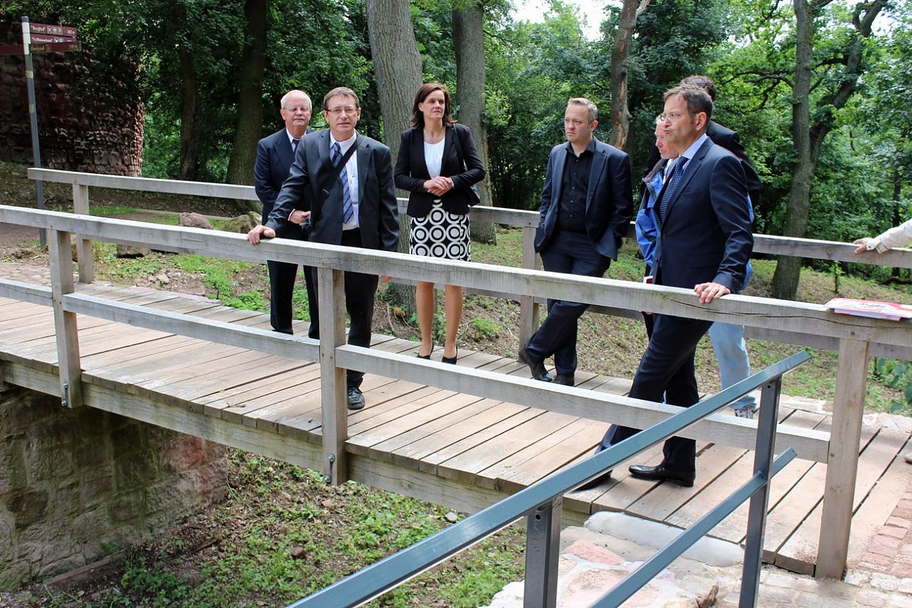 Nach der Übergabe und der Enthüllung von zwei Informationstafeln, wer eigentlich die Hauptgeldgeber für die Arbeiten am Kyffhäuserdenkmal waren, zog der ganze Tross, an Planer, Bauleuten und Politikern, samt Medienvertreter zur Unterburg am Kyffhäuser.