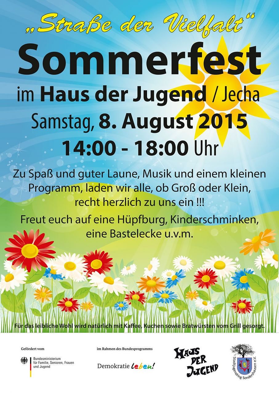 Die Veranstaltung am Samstag, den 08. August 2015 ab 14:00 Uhr trägt den Projektnamen "Straße der Vielfalt" und wurde von den Jugendlichen und dem Hausbeirat des "Haus der Jugend" unter Anleitung der pädagogischen Mitarbeiter geplant. Ziel dieser Veranstaltung ist es, sich mit interkulturellen Themen auseinander zu setzen, die Kinder und Jugendlichen aber auch die Bewohner für diese Themen zu sensibilisieren und ein klares Statement gegen rechte Gewalt abzugeben.