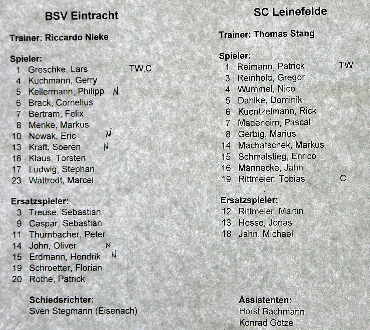 Hier die Aufstellung der beiden Mannschaften. Beim BSV sind die Neulinge in der ersten Mannschaft mit einem N gekennzeichnet.