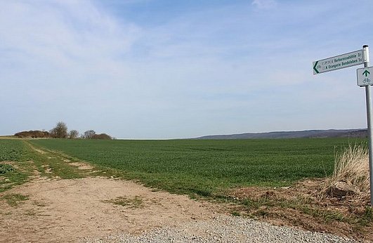 Aber auch entlang der Strecke könnte etwas Werbung nicht schaden. Am UWR selbst sind bereits Hinweisschilder zu den Sehenswürdigkeiten geschaffen worden, wie hier der Wegweiser nach Bendeleben oder zur Barbarossahöhle in Rottleben. Aber wie sieht es in der anderen Richtung aus?