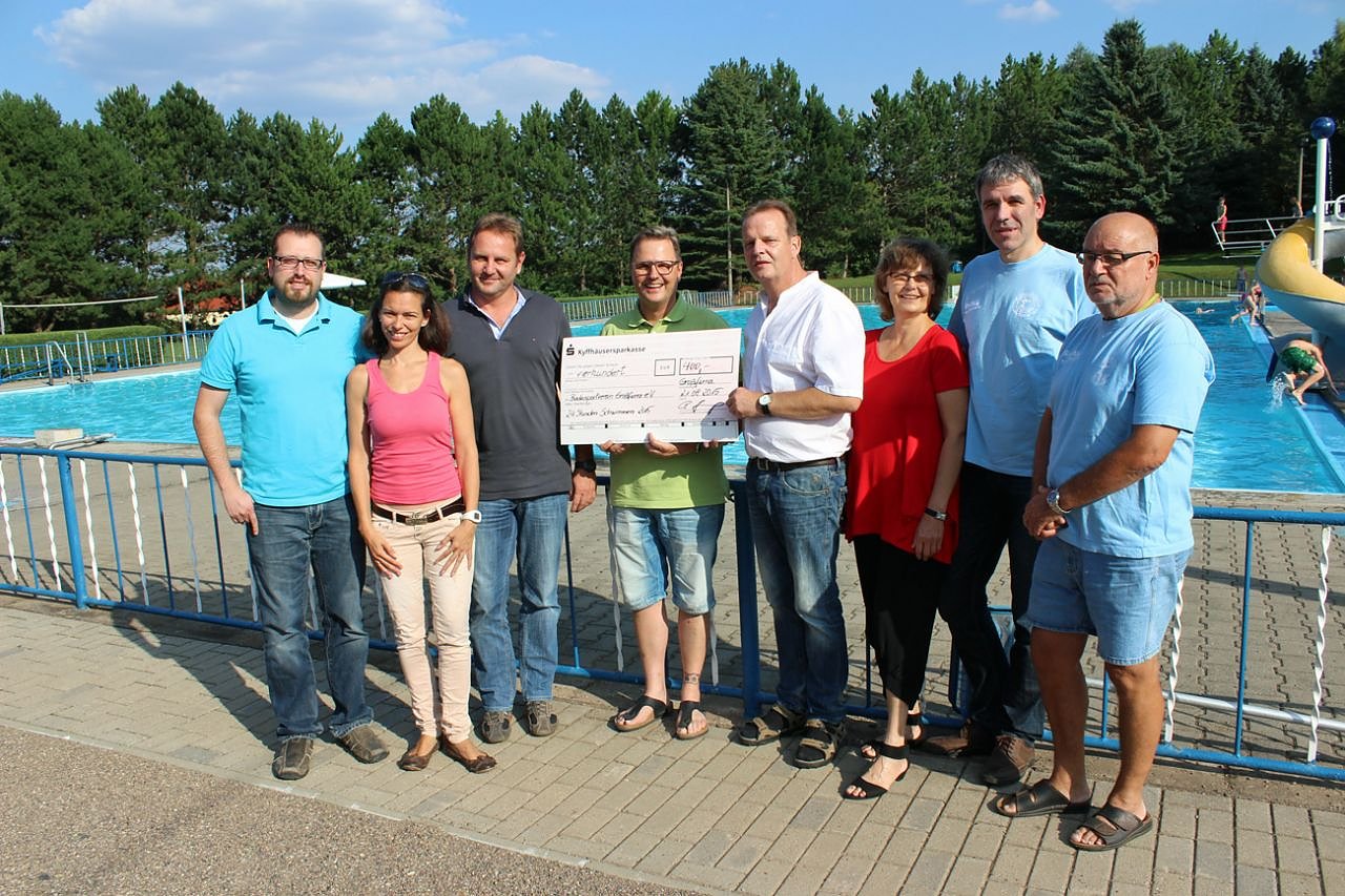 Heute war es soweit. Man übergab einen Scheck in Höhe von 400 Euro an den Vorsitzenden des Schwimmbadvereins Detlef Wiegel.