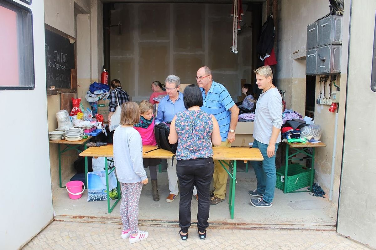 Für die Zeit von 10:00 Uhr bis 12:00 Uhr hatte die Stadtverwaltung das alte Feuerwehrhaus neben dem Rathaus geöffnet, um Spenden für die am Montag in Bad Frankenhausen angekommenen Flüchtlinge entgegen zu nehmen.