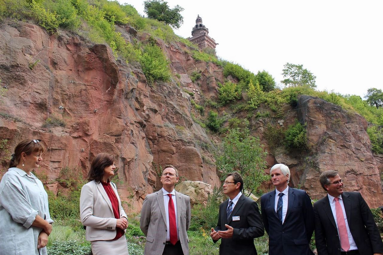 Zuerst ging es um die Steilwandsanierung am Kyffhäuser, die in diesem Bereich erfolgte und um den Bau des Geolifts der ein kleines Stück weiter links vom Foto gebaut werden wird (Bild 1 der Bildergalerie.