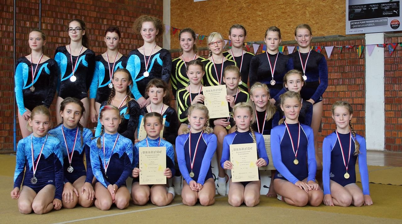 In der 1. Mannschaft turnten Tora Zimmermann, Lisa Blinzler und Patma Craul. In der 2. Mannschaft turnten Flora Schedifka, Lara Gepel, Lea Kaiter und Emy Keiser. In der 3. Mannschaft waren die jüngsten Turnerinnen vertreten mit Sophia Schleier, Fine Dürrenberg, Linette Trietchen und Sahra Kompourakis. Alle strengten sich sehr an. Die Podestplätze wurden genau wie die Einteilung der Mannschaften erturnt – 1. Platz 122, 20 Pkt., 2. Platz 121,05 Pkt. und 3. Platz 117,15 Pkt..