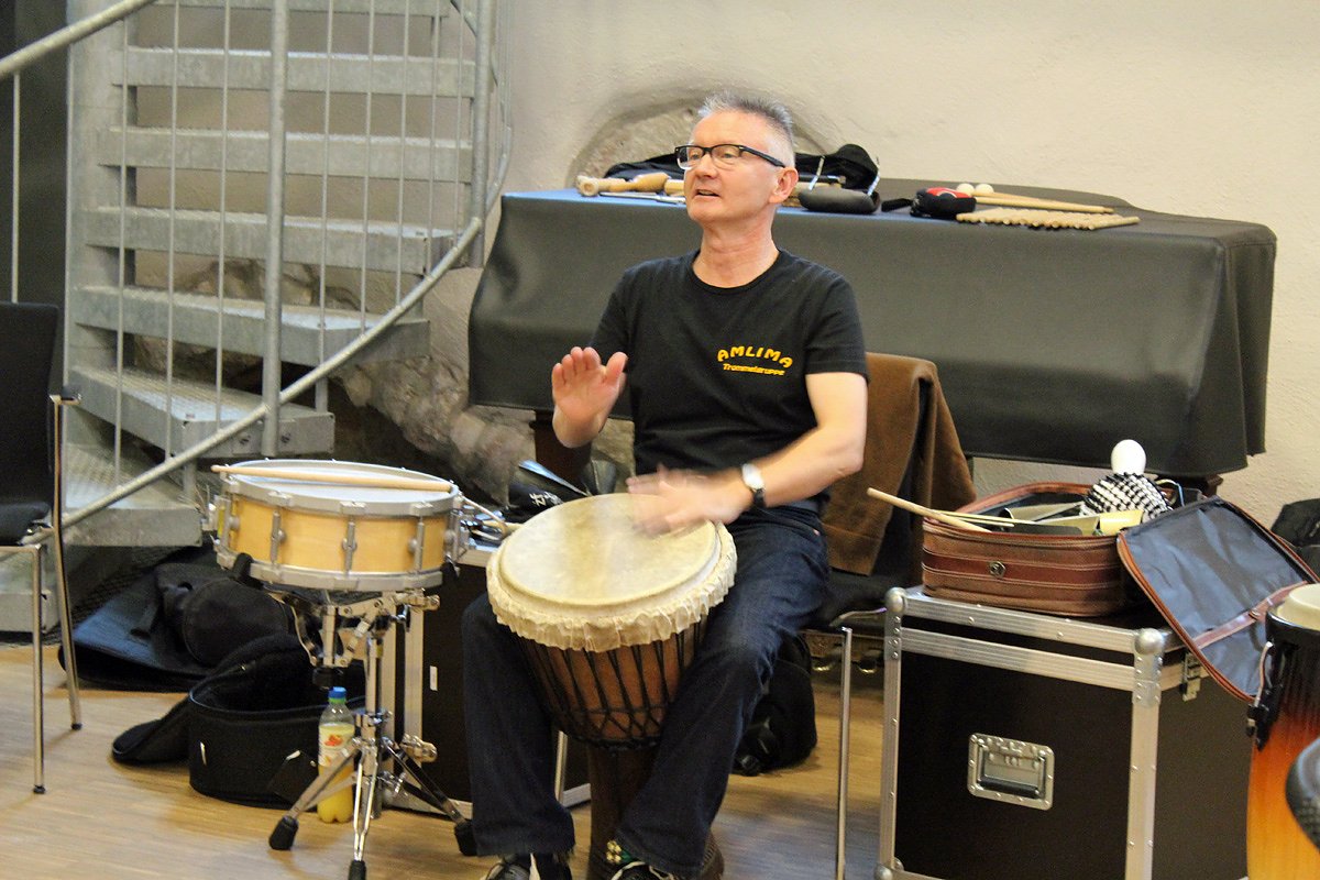Mit Klaus Hagedorn, von der Trommelband Amlima hatte man einen richtigen Profi, dem es gelang, die Anwesenden vom Trommeln zu begeistern.