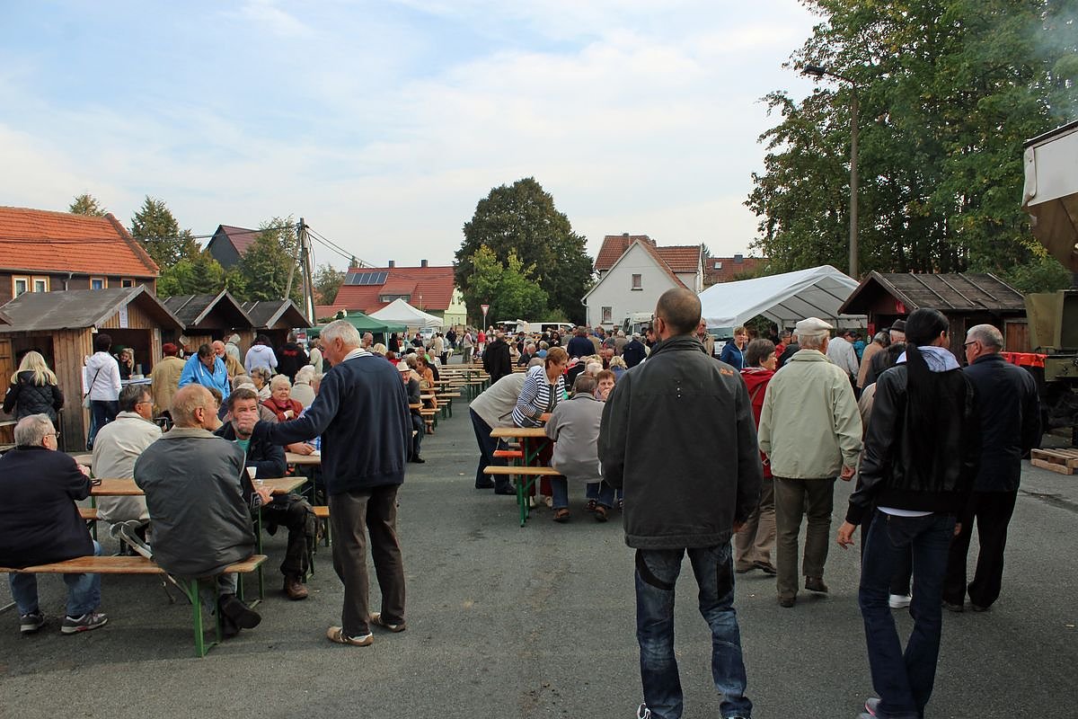 Kartoffeln in veredelter Form hat kn trotzdem noch bekommen. Hier lacht man am Stand der FFW Rockensußra, denn hier wurde eine sehr leckere Kartoffelsuppe verkauft. Danach zog kn zufrieden weiter. An anderen Ständen gab es Kartoffeln veredelt als Kartoffelsalat.