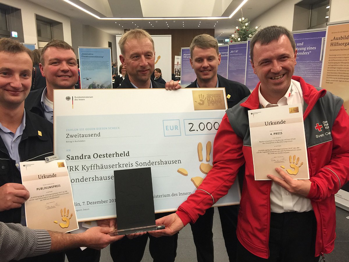 In dieser Kategorie errang das Projekt der Nachwuchsarbeit der gemeinsamen Abschlussübung von Feuerwehr, DRK und THW den 4. Preis, der immerhin auch noch mit 2.000 Euro belohnt wird. Das Geld ist willkommen, weil man auch im nächsten Jahr einen gemeinsamen Ausbildungstag durchführen will.