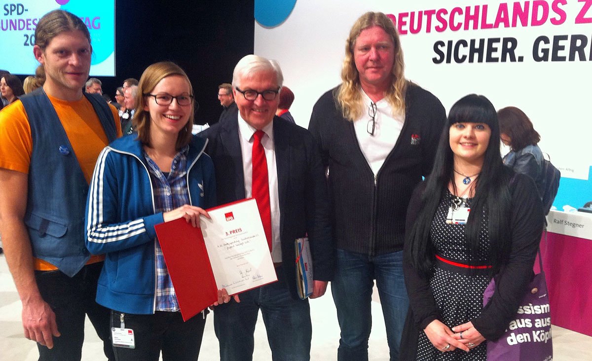 Der Stadtjugendring Sondershausen e.V. wurde am Rande des SPD Bundesparteitages für sein Engagement im Bereich der Demokratie – und Toleranzerziehung sowie der präventiven Extremismusbekämpfung bei Jugendlichen mit dem Wilhelm Dröscherpreis ausgezeichnet.