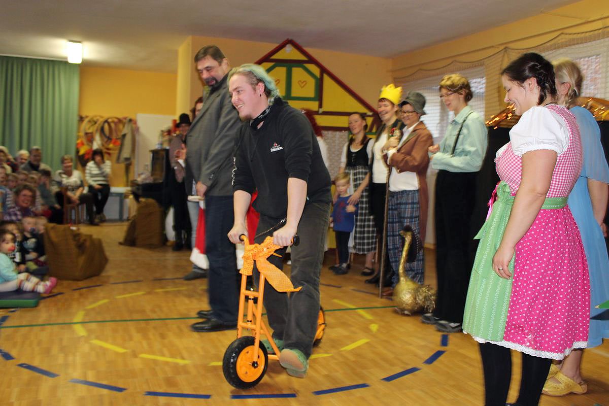 Auch wenn er keine goldene Gans bekam, der Bürgermeister hatte einen Trittroller dabei, den er dem Kindergarten als Weihnachtsgeschenk mitgebracht hatte. Der hat extra breite Reifen, damit ihr auch auf Schnee fahren könnte, meinte er.