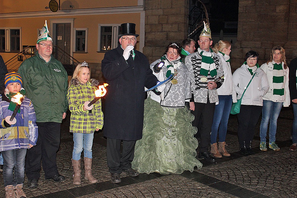 Es hatte schon etwas Gespenstisches an sich, als jeden Menge Närrinnen und Narren sich in der Hauptstraße von Sondershausen "zusammenrotte" und gar Fackeln angezündeten.