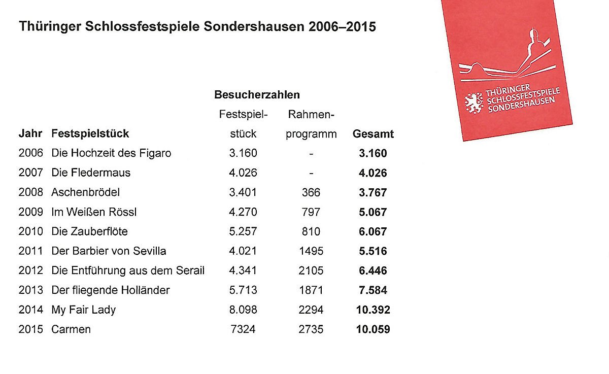 Lars Tietje erinnerte aber erst mal, dass es ohne die Stadt Sondershausen die Erfolgsgeschichte Thüringer Schlossfestspiele Sondershausen nicht gegeben hätte. Die Idee war nach der Landesausstellung 2004 geboren worden.