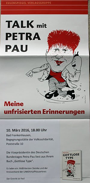 Petra Pau, Vizepräsidentin des Deutschen Bundestages, liest demnächst in Bad Frankenhausen aus ihrem Buch Gottlose Type - Meine unfrisierten Erinnerungen":...
