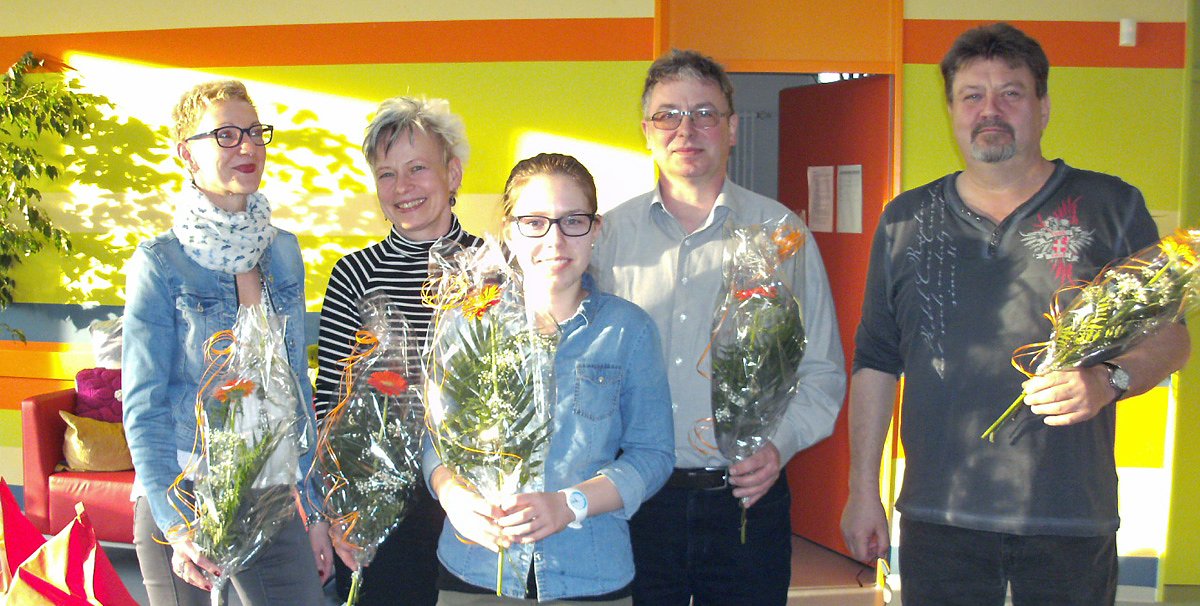 Ihm zur Seite stehen( von links ), Kathrin Wenke in der Funktion als Schatzmeisterin, Corina Suck als Schriftführerin, Maria Stolzke als Kinder und Jugendbeauftragte, sowie Werner Bank, als ehrenamtlicher Geschäftsführer.