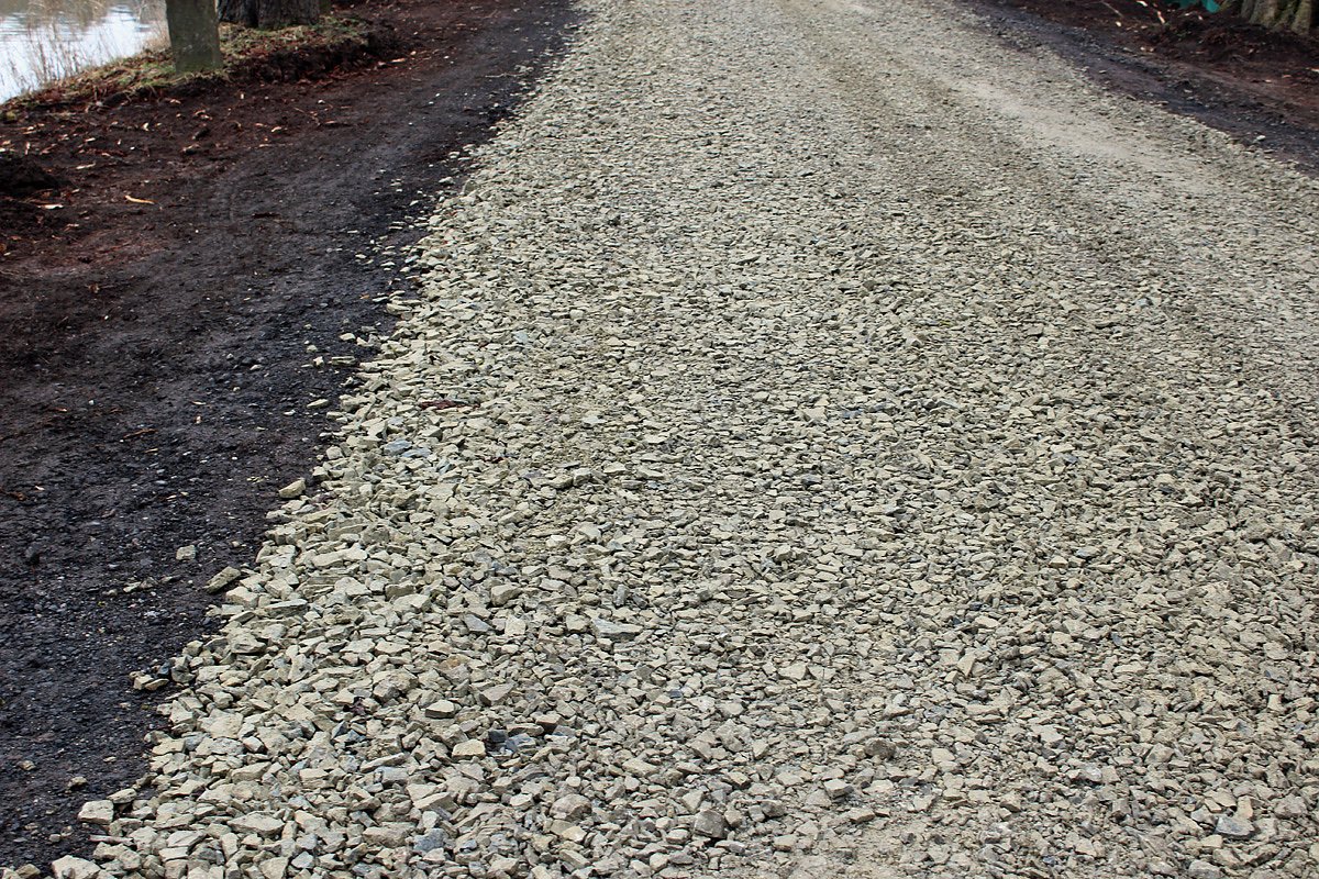 Dieser Kalksteinschotter dürfte trotz seiner Nachteil bei Nässe (wird leicht schmierig) die Nachteile des bisher sehr schlechten Zutandes mit den riesigen Pfützen selbst bei Trockenheit deutlich überwiegen. Durch normale Verschmutzung dürfte sich der bisher recht grobe Belag sicher bald nicht mehr so auffallen.