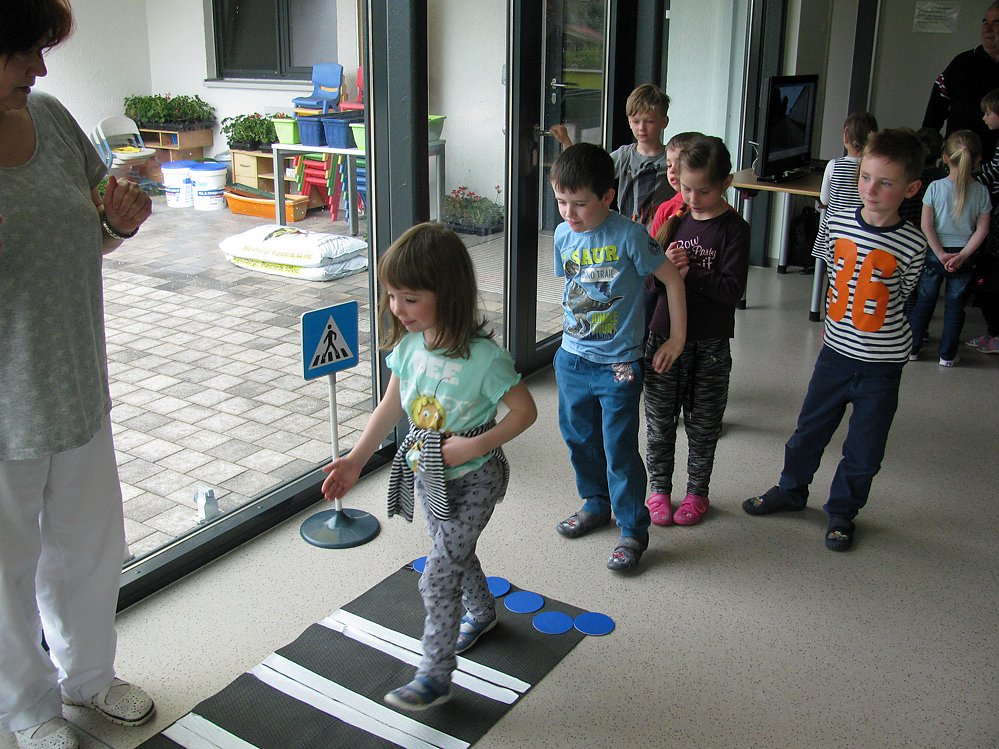 Die Anforderungen an die Kinder waren in Bezug Konzentration, Koordination und Beweglichkeit hoch gesteckt, so beim Ampelspiel, beim Richtungshören verschiedener Geräusche und Schulung des Gleichgewichtes.