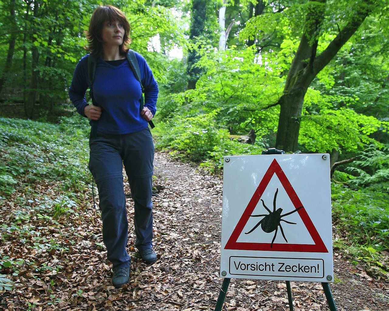 Vor Zecken schützen kann man sich am besten, indem man hohe Gräser meidet und bei dem Waldspaziergang keine Äste oder Sträucher streift. Lange Hosen und geschlossene Kleidung erschweren es der Zecke zusätzlich, eine geeignete Hautstelle zu finden. Je heller die Kleidung ist, umso eher wird eine Zecke entdeckt. Wer im Wald oder im hohen Gras unterwegs war, sollte sich danach auf jeden Fall gründlich absuchen. Oft läuft die Zecke eine Weile auf dem Körper umher, bevor sie sticht.Ein entdeckter Zeckenstich ist dann aber kein Grund zur Panik. Jetzt ist es wichtig, die Zecke möglichst hautnah und kontrolliert zu entfernen. Am besten eigne sich dafür eine spezielle Zeckenzange aus der Apotheke. Mit dieser wird die Zecke vorsichtig herausgezogen. Die meisten Experten empfehlen dabei, auf die früher empfohlene Drehbewegung zu verzichten.