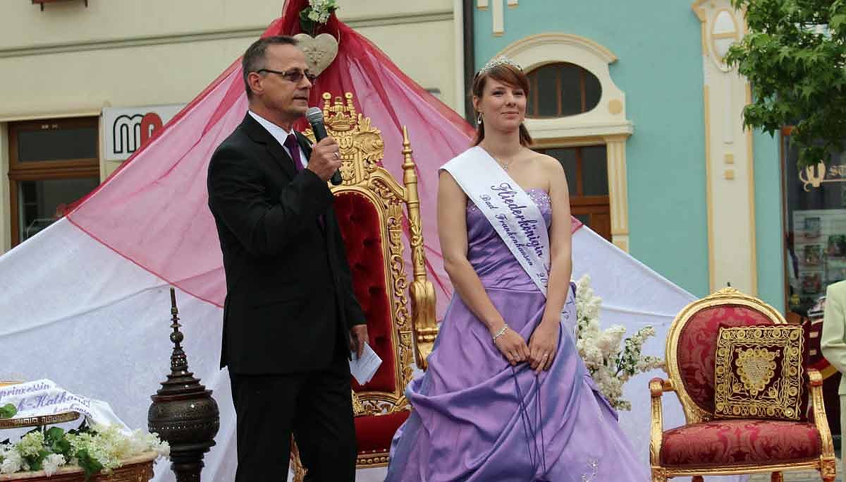 Autor: khhNach der offiziellen Eröffnung des 24. Fliederfest gab es dieses Jahr vom neu konstituierten Gewerbeverein Bad Frankenhausen ein völlig neu Form der Krönung der Fliederkönigin und der Einführung einer neuen Fliederprinzessin, die die sehr umfangreiche Arbeit der Fliederkönigin unterstützen soll. Fliederkönigin und Fliederprinzessin sollen Bad Frankenhausen bei vielen Veranstaltungen bekannt machen. Die Fliederprinzessin soll dann später das Amt der Fliederkönigin übernehmen.