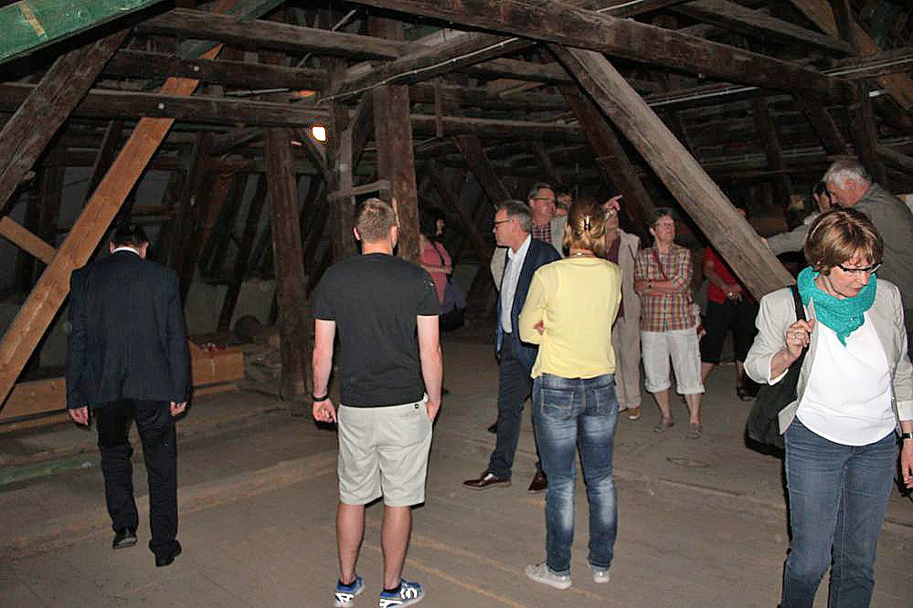 Der Dachboden wird nicht komplett ausgebaut werden, so Carsten Schmidt bei der Führung, aber an einer Stelle will man eventuell Technik aufstellen, die notwendig werden wird.