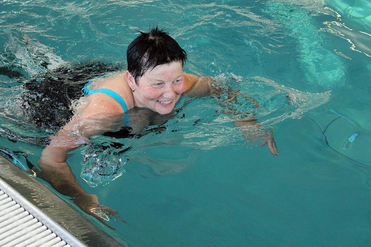 Bis morgen 9.00 Uhr sollte jedes Schwimmteam eine möglichst hohe Anzahl an Bahnen geschwommen haben, um einen weitestgehend hohen Spendenertrag zu erzielen. Die Anzahl der geschwommenen Bahnen wird in einen Spendenbetrag umgerechnet und erhöht sich mit jeder weiteren geschwommenen Bahn, so die Geschäftsführerin des Kuratoriums, Regina Girschele, bevor sie sich selbst ins Wasser stürzte.
