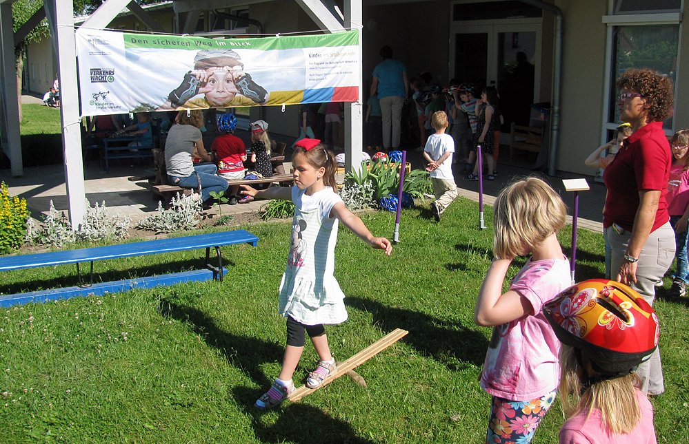 Mit den Kindern werden Verhalten- und Bewegungsregeln im Straßenverkehr erläutert und praktisch geübt. Spielerisch werden Konzentrations,- Koordinations -und Beweglichkeitsübungen bei den Kindern angeregt und als Stationsbetrieb durchgeführt.