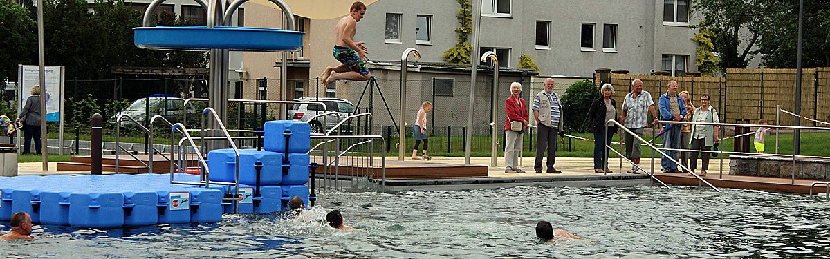 Natürlich wurde unmittelbar nach der Eröffnung gebadet und die Nordthüringer Volksbank spendierte eine ganze Kiste Badeenten.