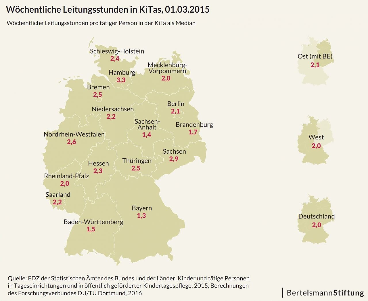 Zusatzinformationen: Grundlage des jährlich aktualisierten Ländermonitors sind Auswertungen von Daten der Statistischen Ämter des Bundes und der Länder aus der Kinder- und Jugendhilfestatistik und weiteren amtlichen Statistiken sowie einer Befragung aller zuständigen Fachministerien der Bundesländer durch die Bertelsmann Stiftung. Stichtag für die Datenerhebung war der 1. März 2014. Die Berechnungen hat der Forschungsverbund Deutsches Jugendinstitut / Technische Universität Dortmund durchgeführt. Zu unterschiedlichen Themen finden Sie Daten und Fakten zu den frühkindlichen Bildungssystemen im Internet unter www.laendermonitor.de.