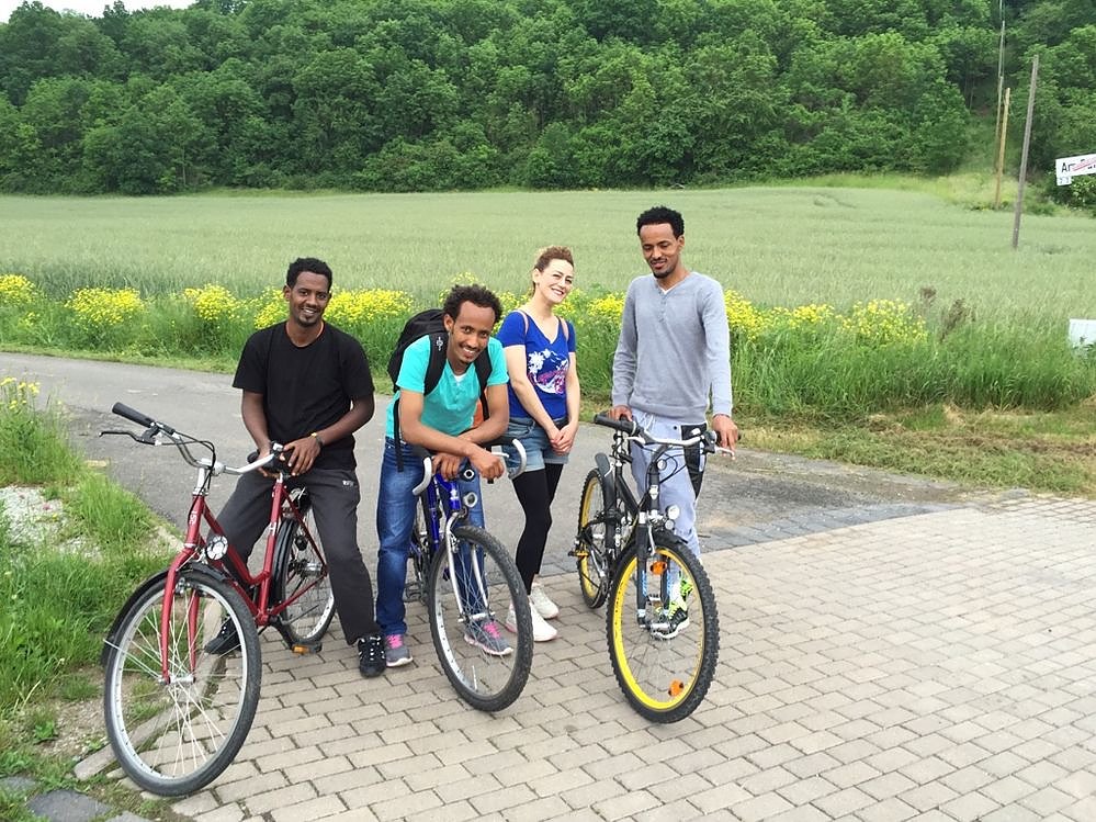 Weiterhin starteten die Franzbergschüler eine Radwanderung zusammen mit Flüchtlingen, als Willkommensgruß im Kyffhäuserkreis auf dem Unstrut-Werra-Radweg. Ausgestattet mit Proviant fuhren sie zum ehemaligen Gästehaus von Juventas, wo sechs Flüchtlinge aus Eritrea und Syrien abgeholt wurden, um mit Ihnen in Richtung Bad Frankenhausen zu radeln. Aufgrund des Unwetters musste die Gruppe jedoch nach ca. 10 km umkehren. Auch die Station Freizeit- und Erholungspark Possen wurde aufgrund der Witterung leider abgesagt.