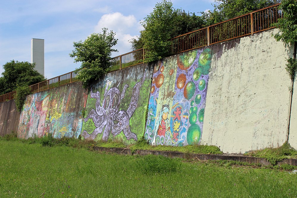 Im Hasenholz/Östertal war im vorigen Herbst mit einem Projekt die Neubemalung der Stützwand begonnen worden...
