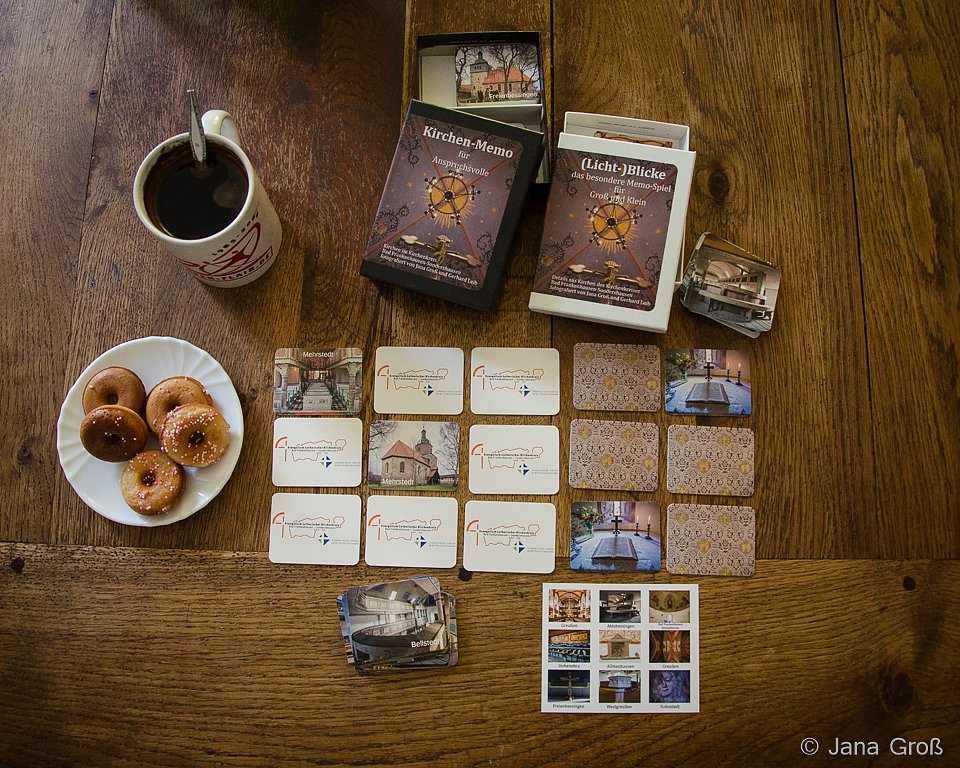 Unter dem Titel Licht-Blicke wird ein 32-teiliges Memo(ry) angeboten, das besondere Detailansichten von Kirchen im Kirchenkreis bietet und auf bisher wenig bekannte Kostbarkeiten und (An-)Sichten hinweist. Dieses Memo (der Begriff Memory ist geschützt) ist für Jung und Alt gleichermaßen geeignet.