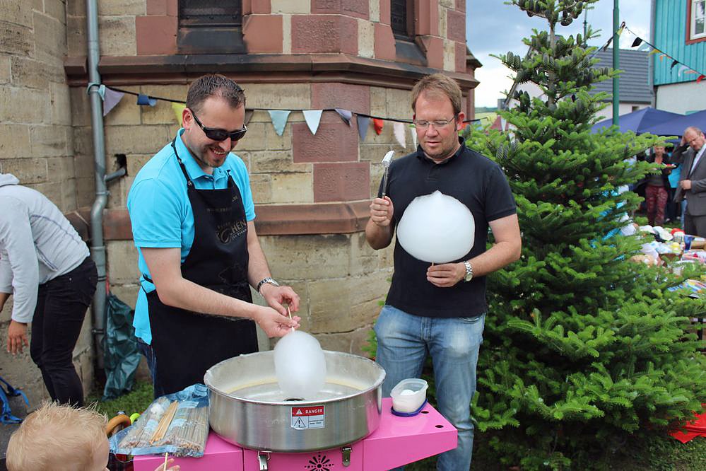 Nach dem Gottesdienst startet ein Kinderfest auf dem Gelände der Kita. Ob Zuckerwatte, ob Eis, oder auch Kaffee und Kuchen, es gab immer etwas leckeres, nicht nur für Kinder. Und Spiele für die Kinder gab es. Auch bei einer Tombola konnte man Preis gewinnen.