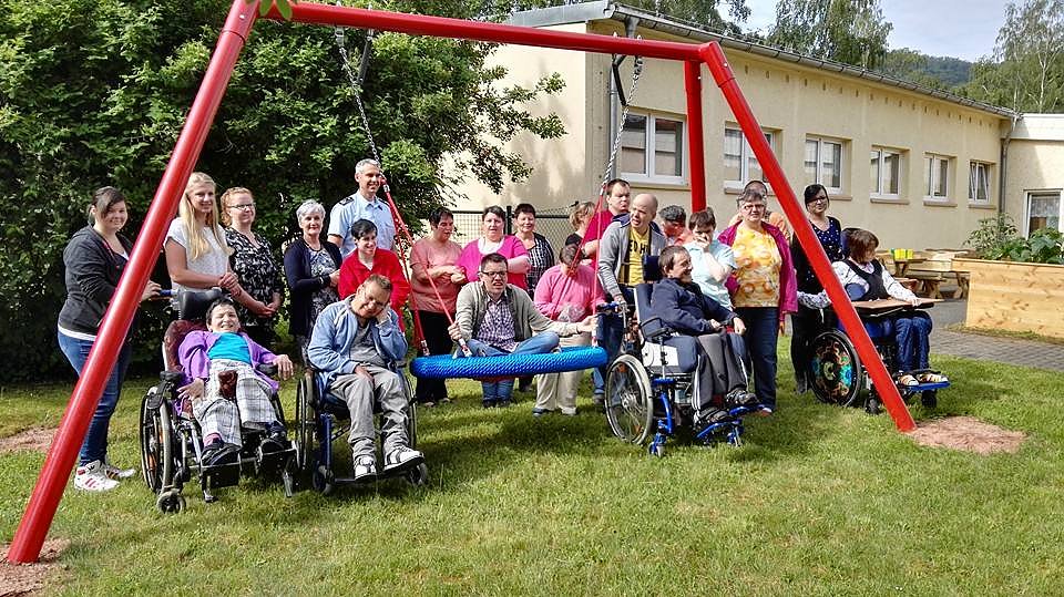 Der Vorsitzender des Kuratoriums, Oberstleutnant Ulrich Rölle, hat gemeinsam mit der Vorsitzenden der Mühlhäuser Werkstätten, Astrid Faber eine Vogelnestschaukel in der Zweigstelle Sondershausen/ Borntal übergeben.