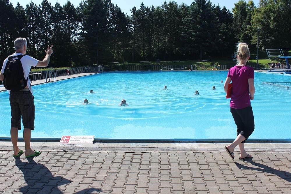 Auch Gäste gb es. Ein Gruppe Kinder hatte den Weg von der Kita "Arche Noah 2" in Großfurra bis zum Schwimmbad zu laufen, um zu sehen, was die größeren Kinder so treiben.