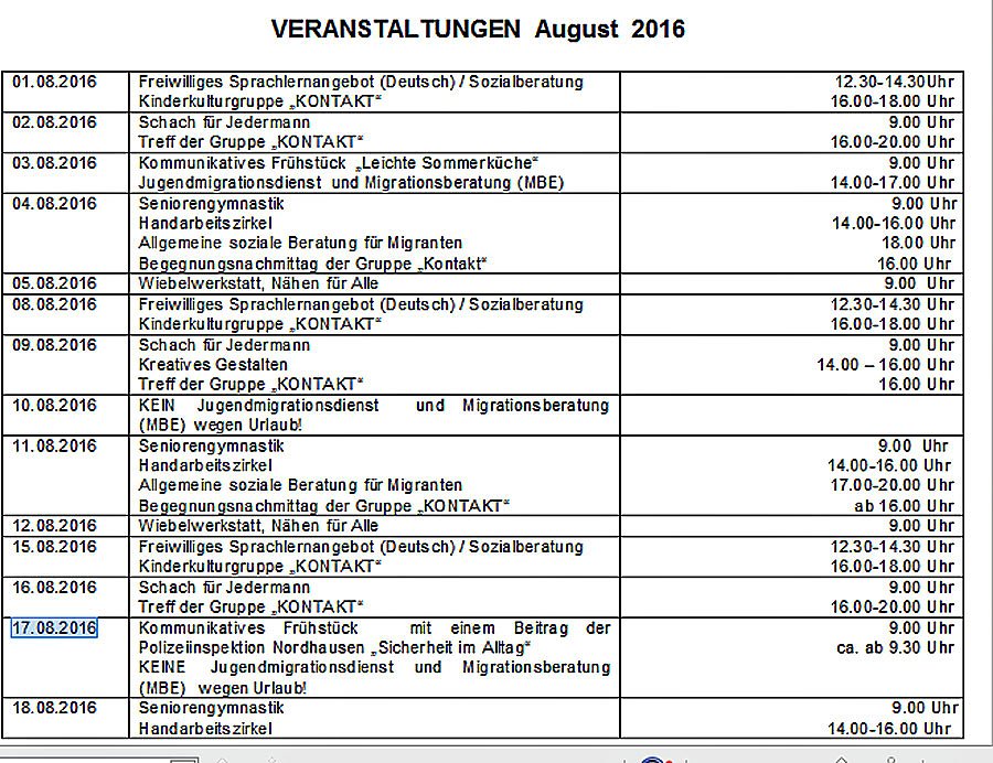 Im August wird im Hasenholz-Oestertal-Center von Sondershausen die Polizei zu Gast sein. Was sonst noch passiert, erfahren Sie hier zum Notieren...