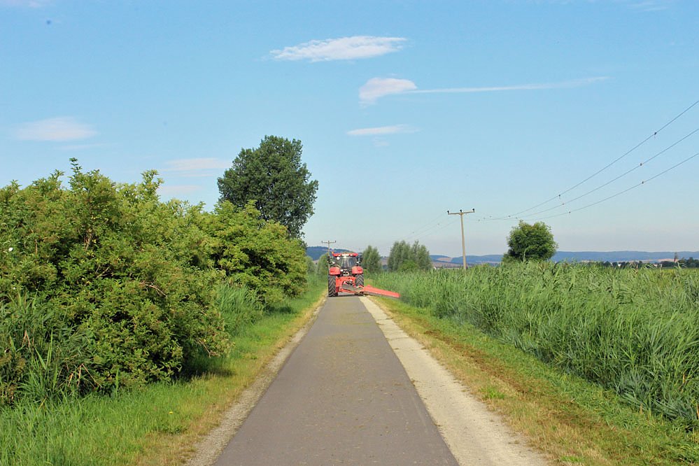 Die Stadt Bad Frankenhausen war gestern mit einem Mähbalken zwischen Esperstedt und Bad Frankenhausen im Esperstedter Ried unterwegs und hat das Unkraut am Radweg abgemäht.