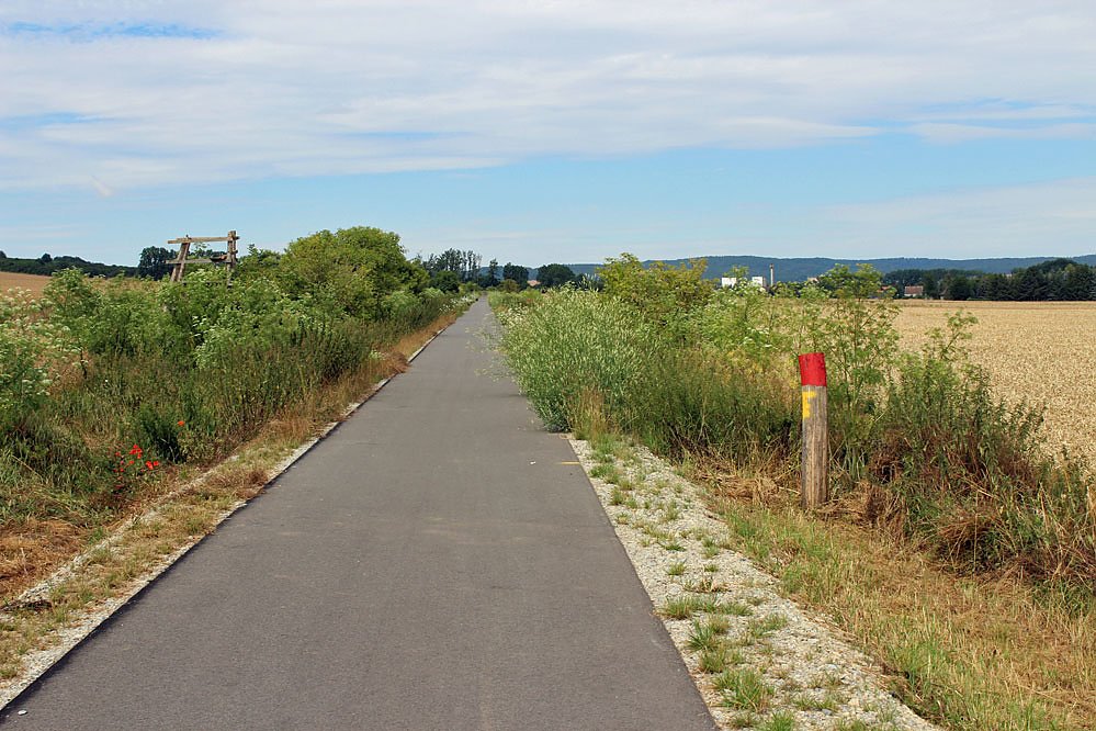 Gestern war es soweit, kn hatte sich auf die Reifen gemacht und ist auf dem UWR von Sondershausen bis Artern gefahren. Und in der Tat, an einigen Stellen wächst das Unkraut recht gewaltig, trotz Trockenheit, und behindert an einigen Stellen, wie im Bild oben zwischen Ringleben und Esperstedt oder auch zwischen Bad Frankenhausen (Gemarkungsgrenze) bis Berka (Gemarkungsgrenze) durch stark hereinragendes Unkraut (Disteln).
