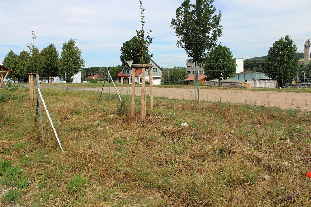 Interessant ist im Bereich der Gemeinde Kyffhäuserland die Pflegeverfahrensweise. Am Radweg selbst wurde bisher noch nichts gemäht, aber die eingezäunten Flächen der Ausgleichspflanzungen wurden vorbildlich gemäht, sowohl in Rottleben (Bild) als auch in Göllingen. Nun ja, da muss man wohl mal die Prioritäten überdenken.