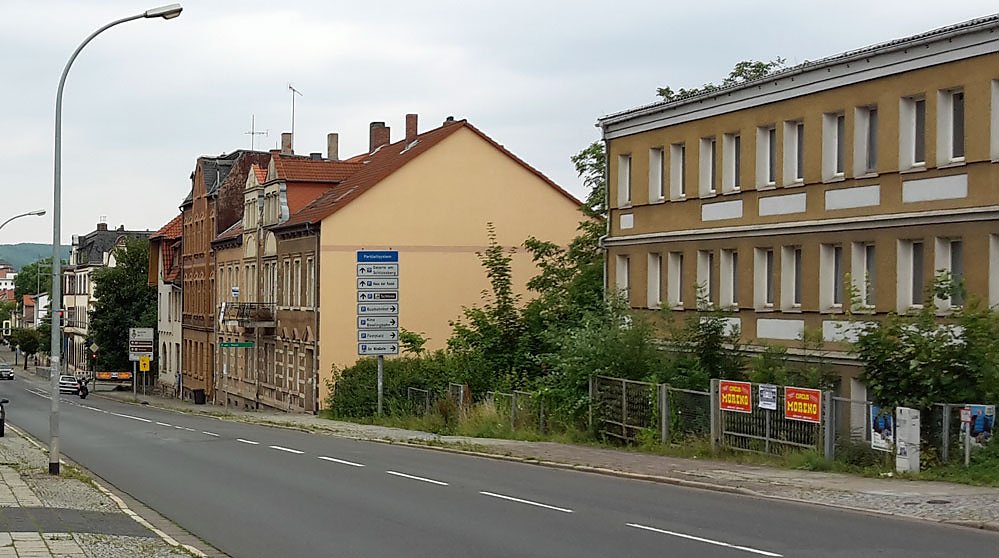 Aber auch an anderen Einfallstraßen nach Sondershausen stehen Ruinen, wie der alte Backwarenbetrieb in der Frankenhäuserstraße oder die Brandruine in der Schachtstraße.