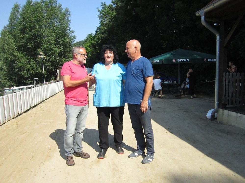 Kein Wunder wenn die neue Betreiberin des Imbiss, Simone Kicaj, vom strahlenden Präsidenten des DRK (Peter Hengstermann) und Vorsitzendem (Karl-Heinz Genzel) in die Arme genommen worden. Denn so einem Kleinod, wie es der Bebraer Teich ist, gehört auch ein Imbiss für die Gäste.