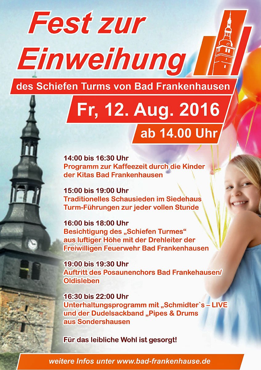Noch sind einige Arbeiten am Schiefen von Bad Frankenhausen zu tun, aber die Feierlichkeiten aus Anlass zur Rettung sind in vollem Gange. Hier die Einzelheiten aus der Stadtverwaltung Bad Frankenhausen zum geplanten Turmfest...