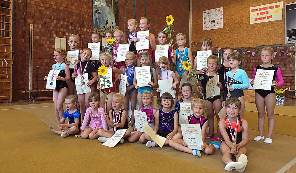 Es war ein schöner Wettkampf in angenehmer Atmosphäre! Jeder Sieger erhielt eine Sonnenblume. Besucht hat uns auch der Bürgermeister Herr Kreyer – den unsere jüngsten Turner auch alle erkannten!